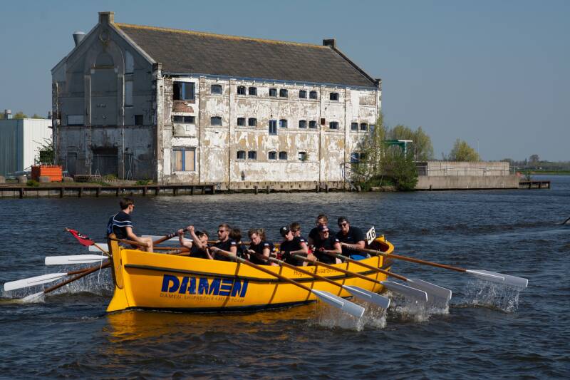 Onze voorbereiding hield onder andere in dat er stickers van onze nieuwe sponsor ‘Damen Shiprepair & Conversion Amsterdam’ op de Plancius geplakt werden. Verder hebben we de sloep vol geladen met flesjes water, omdat het een warme dag was. Daarna was er zelfs nog tijd om even een stukje in te roeien.